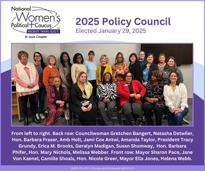 LOCAL: The St. Louis Chapter of the National Women’s Political Caucus is a progressive, pro-choice, non-partisan, grassroots membership organization dedicated to identifying, recruiting, training and supporting women candidates for elected and appointed office.